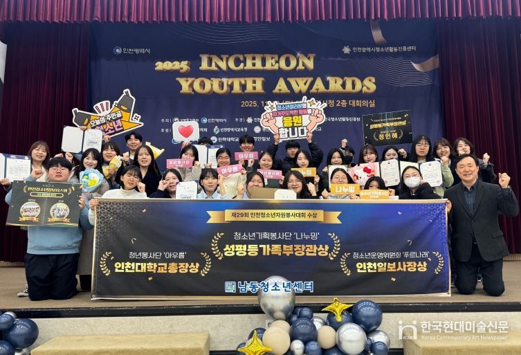 한국현대미술신문 박재남 기자 | 인천시 남동구 남동청소년센터는 소속 청소년 활동 참여‧자치기구가 인천시청에서 열린 ‘2025년 우수 청소년 활동 시상식(인천 유스 어워즈)’에서 성평등가족부 장관상을 포함해 총 8개 부문에서 수상했다고 26일 밝혔다.