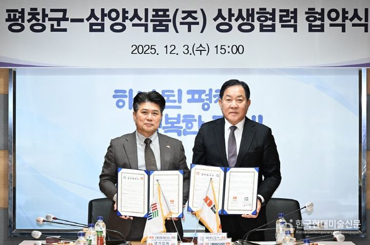 한국현대미술신문 원진 기자 | 평창군과 삼양식품은 지방 소멸 위기에 대응하고 지속 가능한 지역 성장 기반을 마련하기 위해 ‘지방 살리기 상생 자매결연’ 업무협약을 체결했다.