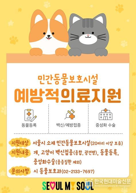 동물의료지원을 원하는 민간동물보호시설은 민간단체 등록이나 비영리 법인 등록 여부와 관계없이, 서울시 소재 동물을 보호하는 시설이면 어디나 가능하며 서울시 동물보호과로 의료지원을 요청하면 된다. 본 사업은 2026년에도 지속적으로 운영할 예정이다.