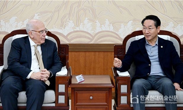 한국현대미술신문 박재남 기자 | 유정복 인천시장은 12월 3일 오후 인천시청 접견실에서 세계 최고 수준의 의과·바이오 연구 중심 대학인 존스홉킨스대의 조나단 슈넥(Jonathan schneck) 의과대학 교수(왼쪽) 일행을 접견했다.