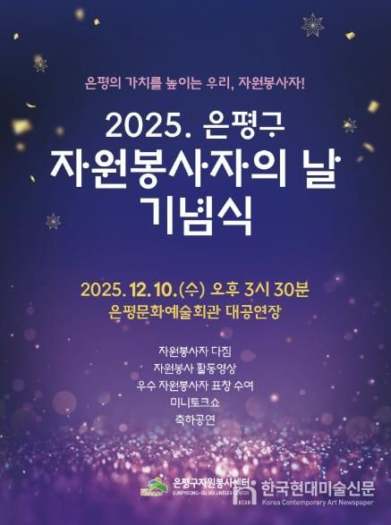 한국현대미술신문 배건 기자 | 서울 은평구는 오는 10일 은평문화예술회관 대공연장에서 ‘2025 자원봉사자의 날 기념식’을 개최한다고 밝혔다.