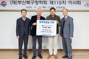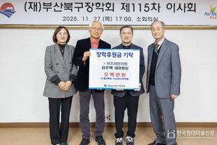 한국현대미술신문 정소영 기자 | 부산 북구는 최근 한사랑내과병원 김지원 원장이 (재)부산북구장학회에 장학기금 500만 원을 기탁했다고 밝혔다.