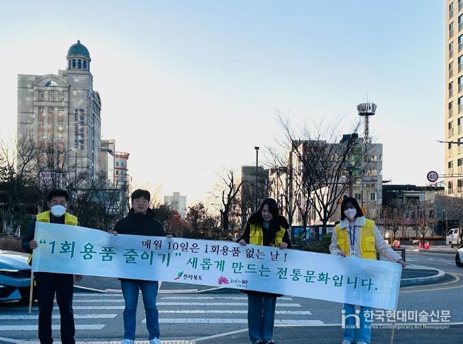 한국현대미술신문 기자 | 전주시는 8일 전주역 앞 첫마중길 일대에서 생활 속 1회용품 줄이기를 위한 ‘1회용품 없는 날’ 캠페인을 전개했다.
