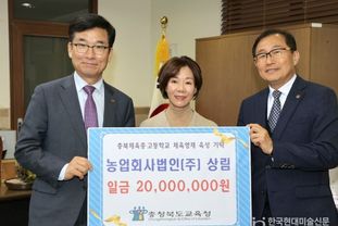 한국현대미술신문 신정은 기자 | 충청북도교육청은 8일 오후, 충북체육중‧고등학교에서 농업회사법인(주)상림과 학교 발전과 학생선수 지원을 위한 기탁금 전달식을 개최했다고 밝혔다.
