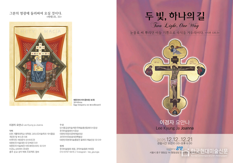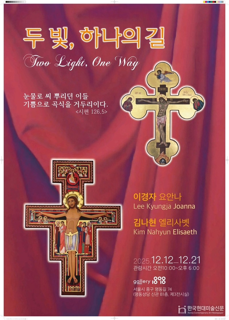 오는 2025년 12월 12일부터 21일까지, 서울 명동 1898 제3전시실에서 열리는 “두 빛, 하나의 길” 전시는, 두 천주교 평신도 화가가 각기 다른 영적 감수성과 전통 안에서 빚어낸 이콘(icon, 성화) 26점을 선보인다.