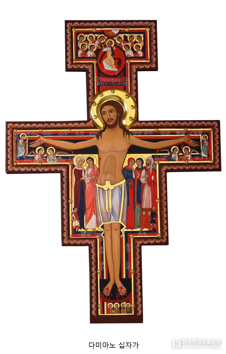 "다미아노 십자가"는 성 프란치스코가 기도하던 작은 교회, 아시시의 ‘산 다미아노 성당’에서 유래한 성화 십자가이다. 프란치스코는 이 십자가 앞에서 기도하던 중 “프란치스코야, 무너져가는 나의 집을 다시 세워라”. 라는 주님의 음성을 들었다고 전해진다. 이 십자가는 전통적인 비잔틴 이콘 양식으로 제작되었으며, 예수님이 죽음이 아닌 영광스럽고 승리하신 모습으로 표현되는 것이 특징이다.