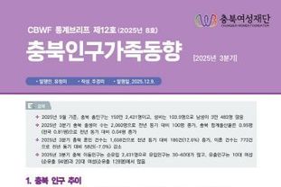 2025년 3분기 충북인구가족동향은 통계청 인구통계를 기반으로 작성됐으며, 자료는 재단 누리집', 또는 카카오채널 ‘같이톡톡’에서 자료를 내려받을 수 있다.