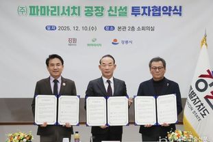 한국현대미술신문 원진 기자 | 강원특별자치도는 12월 10일 도청 본관에서 강릉시 및 ㈜파마리서치와 함께 강릉 과학일반산업단지 내 제5공장 신설을 위한 투자협약(MOU)을 체결했다.