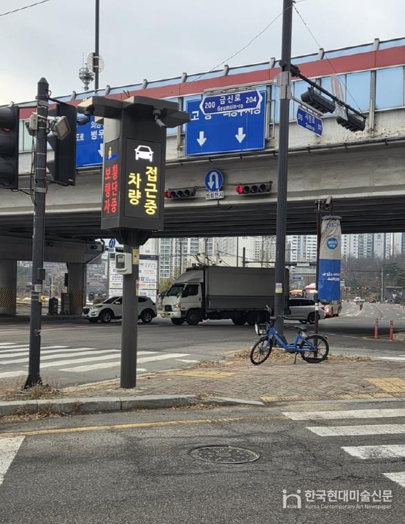 한국현대미술신문 배윤섭 기자 | 의정부시는 신곡동 148-2(신곡고가사거리 인근)와 의정부동 145-3(파발교차로 인근) 등 2개소에 ‘인공지능 기반 보행자 안전 스마트 횡단보도’를 설치하고 시범운영에 들어간다고 12일 밝혔다.