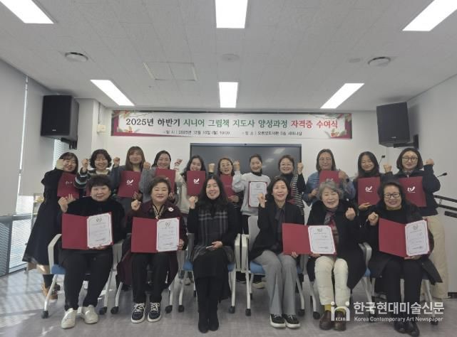 한국현대미술신문 배윤섭 기자 | 동두천시 도서문화사업소 오르빛도서관은 지난 9월 22일부터 12월 1일까지 운영한 ‘시니어 그림책 지도사 양성과정’에서 자격시험에 응시한 15명 전원이 합격해 자격증을 취득했다고 밝혔다.