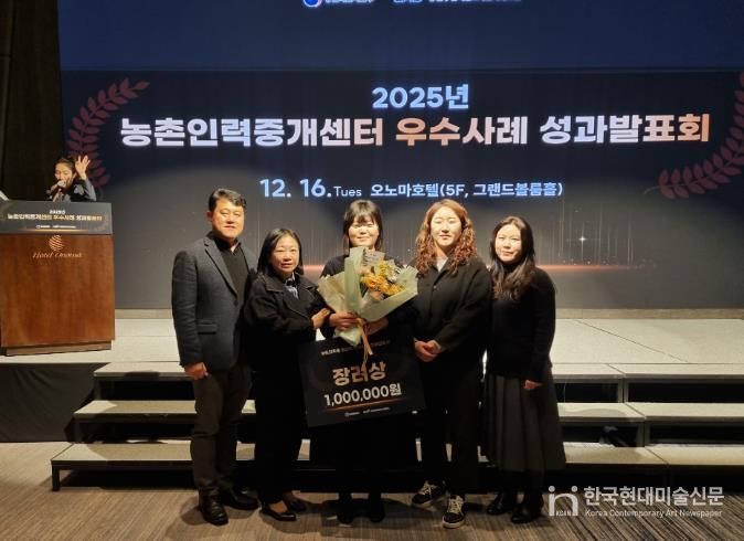 한국현대미술신문 박재남 기자 | 강화군은 지난 16일 농림축산식품부 주관으로 대전시 오노마호텔에서 열린 ‘2025년 농촌인력중개센터 우수사례 성과발표회’에서 강화남부농협이 장려상을 수상했다고 밝혔다.