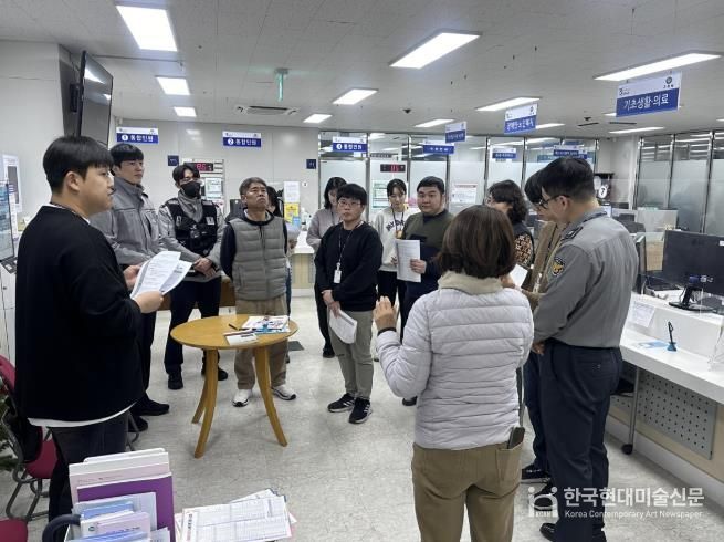 한국현대미술신문 배윤섭 기자 | 구리시 교문1동 행정복지센터는 지난 12월 15일 교문1동 행정복지센터 1층에서 민원 현장에서 발생할 수 있는 폭언·폭행 등 특이 민원 상황에 효과적으로 대응하기 위한 ‘2025년 하반기 특이 민원 대응 모의훈련’을 실시했다.
