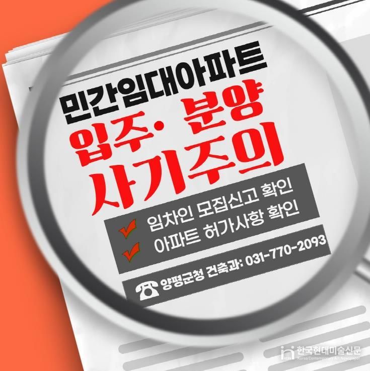 한국현대미술신문 배윤섭 기자 | 양평군은 최근 관내에서 장기일반 민간임대주택 투자와 관련한 문의가 증가함에 따라 군민들의 주의를 당부했다.