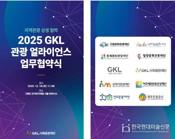 한국현대미술신문 배윤섭 기자 | 여주세종문화관광재단은 지난 12월 16일 GKL 사회공헌재단이 주관한 ‘GKL 관광 얼라이언스 업무협약식’에 참석하여, 전국 8개 지역관광 전담기관과 함께 문화·관광 분야 공익사업 협력을 위한 업무협약을 체결했다고 밝혔다.