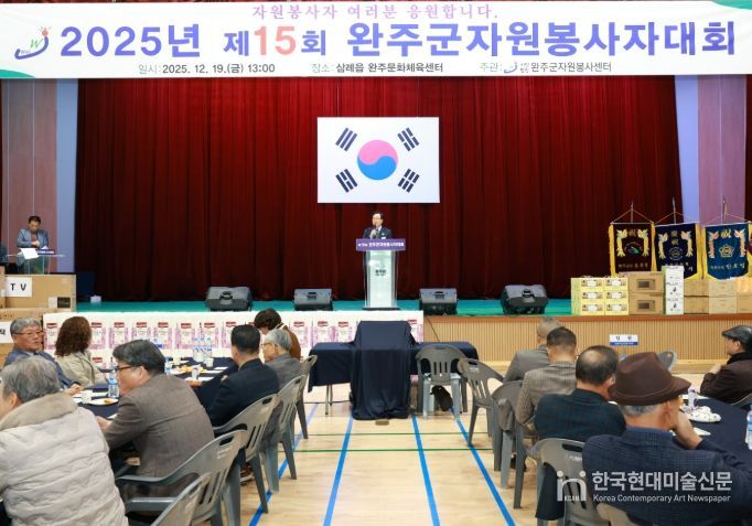 한국현대미술신문 기자 | 사단법인 완주군자원봉사센터는 완주문화체육센터에서 ‘2025년 제15회 완주군 자원봉사자대회’를 열고, 한 해 동안 지역사회 곳곳에서 활동한 자원봉사자들의 노고를 격려했다.