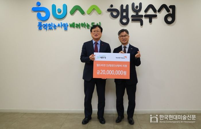한국현대미술신문 정소영 기자 | 사회복지법인 월드비전 대구경북사업본부는 지난 18일 취약계층 아동 가정의 난방비 지원을 위해 후원금 2,000만 원을 수성구청에 전달했다.