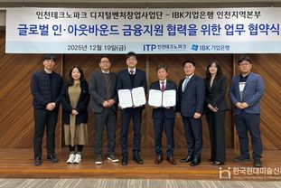 한국현대미술신문 박재남 기자 | 인천테크노파크는 지난 19일 IBK기업은행 인천지역본부와 글로벌 인·아웃바운드 금융지원 협력 업무협약(MOU)을 체결했다고 밝혔다.