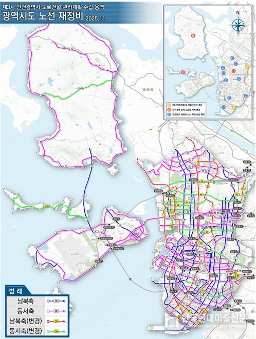 한국현대미술신문 박재남 기자 | 인천광역시는 12월 22일 송도·청라경제자유구역 및 계양 테크노밸리(TV) 개발계획, 고속도로 건설 및 교통혼잡도로 개선사업계획 등 국가 상위계획을 반영해 광역시도 노선 체계를 재정비하여 고시한다고 밝혔다.