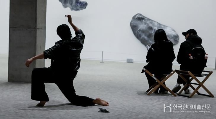 지난 11월 29일에는 코어레주(Corelage, 김민혁, 정성택, 양설희)가 참여한 첫 번째 프로그램 '댄스 콜라주'가 진행됐다. 무용을 기반으로 한 세 명의 퍼포머가 전시 작품에서 영향을 받아 제작한 사운드를 중심으로 즉석 퍼포먼스를 펼쳤다.