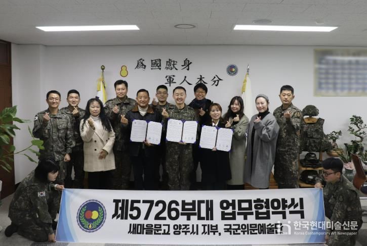 한국현대미술신문 배윤섭 기자 | 새마을문고 양주시지부는 지난 12월 19일, 육군 제5726부대에서 군 장병들의 독서문화 확산과 인문학적 소양 증진을 위한 업무협약(MOU)을 체결했다고 밝혔다.