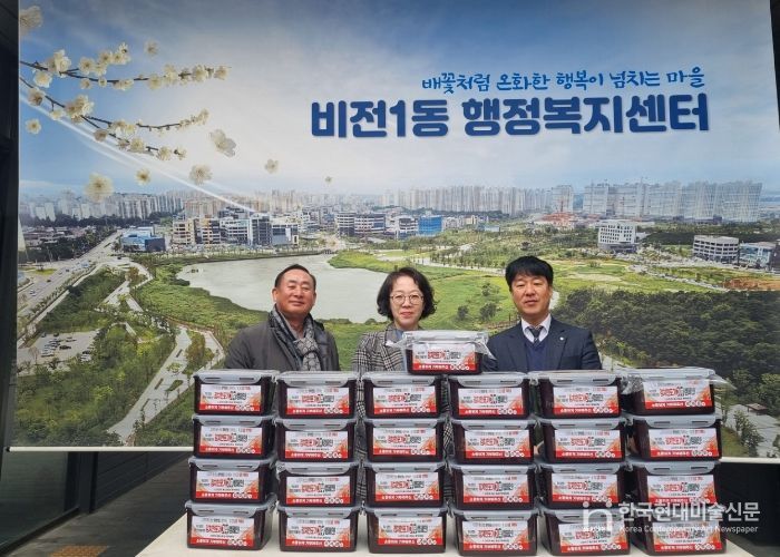 한국현대미술신문 배윤섭 기자 | LG전자 베스트샵 평택본점에서는 지난 19일 평택시 비전1동 행정복지센터에 지역 내 소외된 이웃을 위한 김장김치 25박스를 기부했다.
