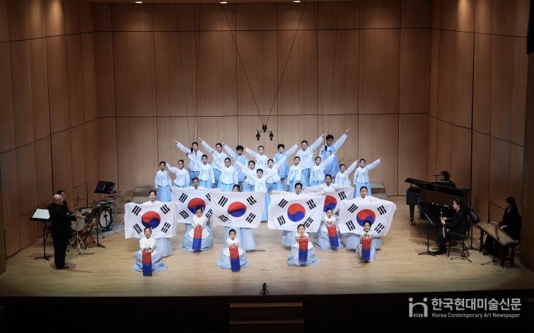두 번째 무대에서는 단원들이 한복을 입고 ‘홀로 아리랑’ 등을 청년예술단체 ‘마므로’ 팀의 국악 반주와 함께 선보였고, 청사초롱과 태극기를 활용한 안무를 더해 전통의 아름다움과 애국의 정서를 담아내 관객들에게 깊은 여운을 선사했다.