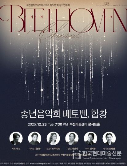 한국현대미술신문 배윤섭 기자 | 부천필하모닉오케스트라가 오는 12월 23일 오후 7시 30분 부천아트센터 콘서트홀에서 제332회 정기연주회 송년음악회 ‘베토벤, 합창’을 개최한다. 이번 송년음악회는 부천필이 2015년부터 매년 선보여온 프로그램인 베토벤 '교향곡 제9번 ‘합창’'과 함께, 모차르트 '피아노 협주곡 제12번'이 연주된다. 공연에는 지휘자 서진과 부천필이 무대에 오르며, 소프라노 박수진, 메조소프라노 이단비, 테너 신지한, 베이스 권영명이 협연하며 부천시립합창단과 노이오페라코러스가 연주로 함께 무대를 꾸민다.