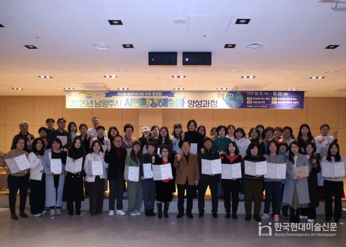 한국현대미술신문 배윤섭 기자 | 남양주시는 22일 금곡양정행정복지센터 6층 다목적공연장에서 기후위기 대응과 지역사회 환경교육의 핵심 역할을 수행할 ‘2025년 시민환경해설사 양성과정’ 수료식을 개최했다.