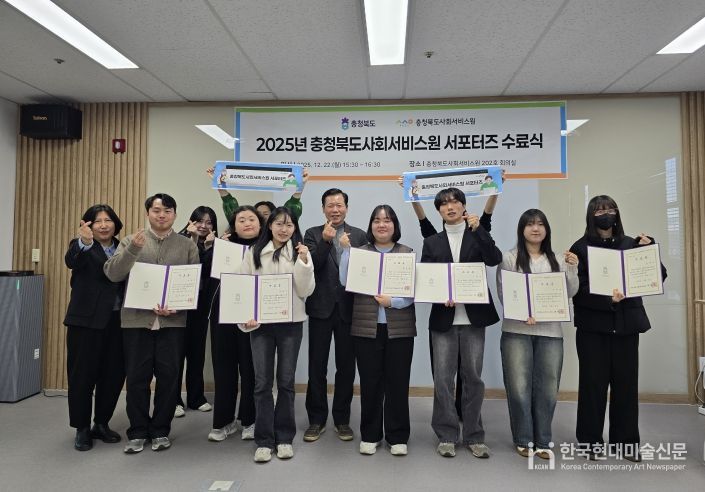 한국현대미술신문 신정은 기자 | 충청북도사회서비스원(이장희 원장)은 12월 22일 오후 3시 30분, 충청북도사회서비스원 회의실에서 2025년 서포터즈 수료식을 개최했다.