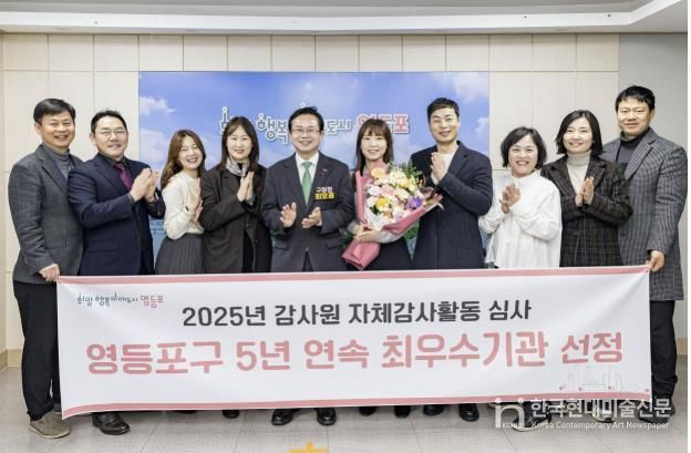 한국현대미술신문 배건 기자 | 영등포구가 감사원 주관 ‘2025년 자체 감사활동 심사’에서 최고 등급인 A등급을 받아 ‘5년 연속’ 최우수기관으로 선정되며 감사원 기관 표창을 수상했다고 밝혔다. 이는 전국 지방자치단체 가운데 유일한 사례로, 구의 체계적이고 선도적인 자체 감사 운영 역량을 다시 한번 입증했다.