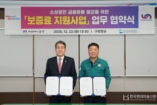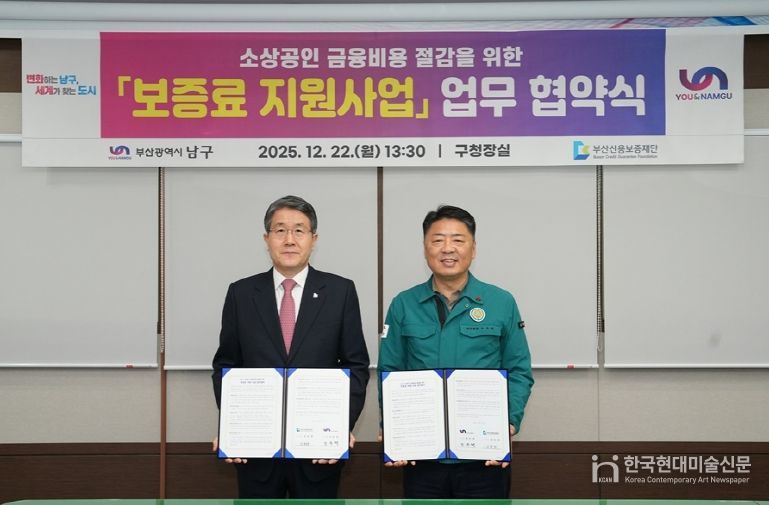 한국현대미술신문 정소영 기자 | 부산 남구는 부산신용보증재단(이사장 성동화)과 지난 12월 22일 남구청에서 소상공인 경영 안정과 민생경제 활성화를 위한 '남구 소상공인 보증료 지원사업 업무협약'을 체결했다고 밝혔다.