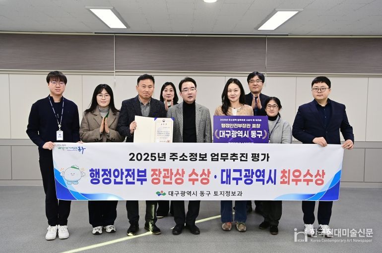 한국현대미술신문 정소영 기자 | 대구 동구청은 행정안전부가 주관하는 ‘2025년 주소정책 업무추진 평가’에서 행정안전부 장관 표창을 수상했다.