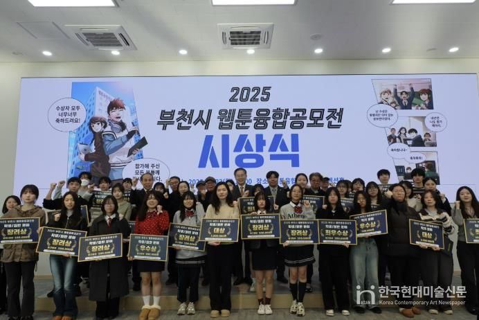 한국현대미술신문 배윤섭 기자 | 부천시는 지난 22일 웹툰융합센터에서 ‘2025 부천시 웹툰융합공모전 시상식’을 열었다. 이번 시상식은 서울신학대학교와 부천대학교가 공동으로 주최·주관했으며, 공모전 수상작 시상과 성과 공유를 위해 마련됐다.