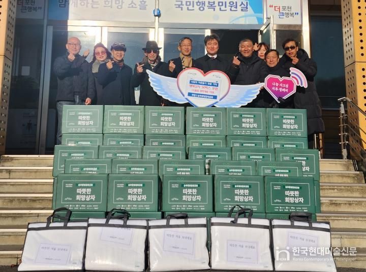 한국현대미술신문 배윤섭 기자 | 포천시 소흘읍행정복지센터는 지난 22일, 포천시 송우중앙감리교회로부터 취약계층 지원을 위한 ‘따뜻한 희망상자’ 50개와 이불 패드 25채를 기탁받았다고 밝혔다.