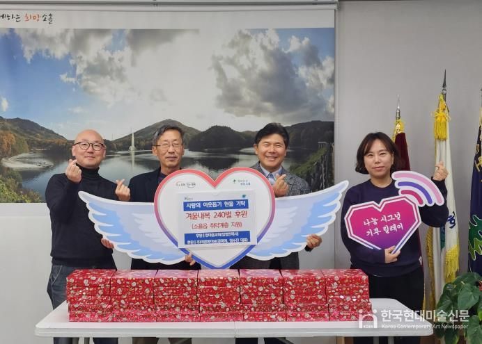 한국현대미술신문 배윤섭 기자 | 포천시 소흘읍 행정복지센터는 지난 22일, 한마음교회와 ㈜마른파이브가 지역 내 취약계층을 돕기 위한 겨울 내복 240벌을 기탁했다고 밝혔다.