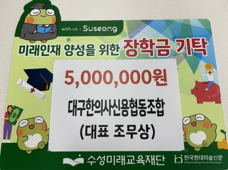 한국현대미술신문 정소영 기자 | 대구한의사신용협동조합(대표 조무상)은 지난 19일 지역 인재 육성과 교육 발전을 위해 장학금 500만 원을 수성미래교육재단에 기탁했다.