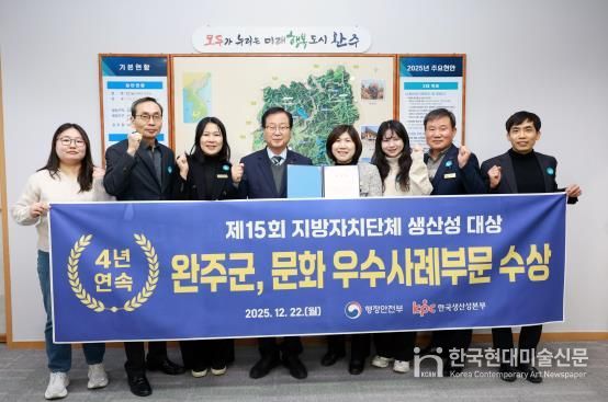 한국현대미술신문 기자 | 완주군이 ‘무장애 문화’를 행정 전반에 접목한 정책 성과를 인정받아, 행정안전부가 주최하고 한국생산성본부가 주관한 ‘제15회 지방자치단체 생산성대상’ 문화분야에서 기관표창을 수상했다.