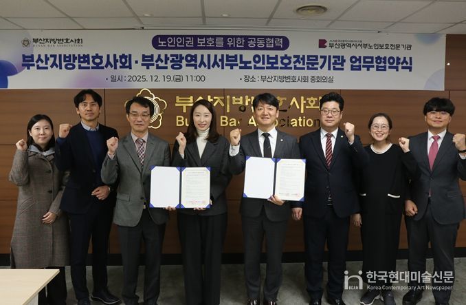한국현대미술신문 정소영 기자 | 서부노인보호전문기관은 2025년 12월 19일 오전 10시 30분, 부산광역시사회서비스원, 부산지방변호사회과 함께 부산지방변호사회 회의실에서 관계자 8명이 참석한 가운데 노인인권보호 공동협력 협약을 체결했다.