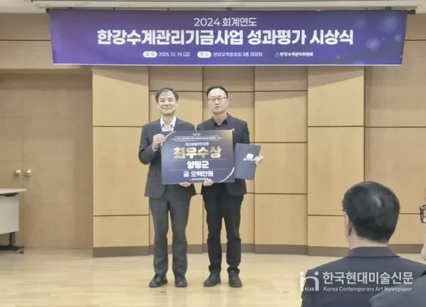 한국현대미술신문 배윤섭 기자 | 양평군은 지난 19일 한강유역환경청이 실시한 ‘2024년도 한강수계관리기금 성과평가’에서 주민지원사업 부문 최우수, 오염총량관리사업 부문 장려를 수상했다고 밝혔다.