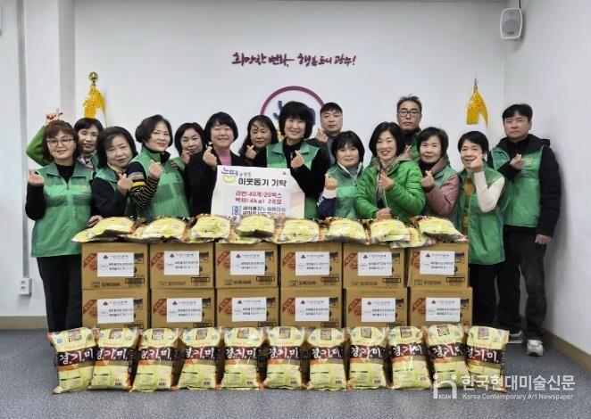 한국현대미술신문 배윤섭 기자 | 광주시 능평동 새마을지도자협의회·부녀회는 23일 능평동 행정복지센터에서 취약계층을 위한 ‘이웃돕기 백미·라면 나눔’ 기탁식을 개최했다.