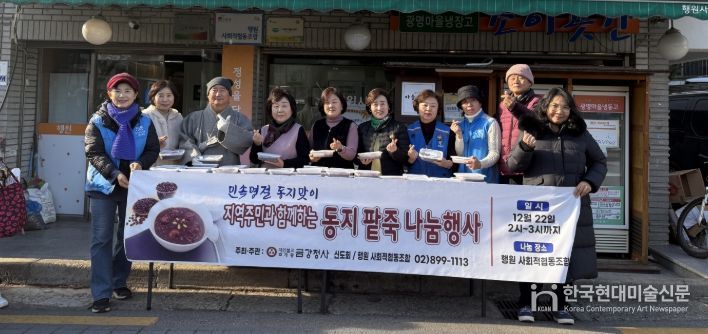 한국현대미술신문 배윤섭 기자 | 광명시 소하2동 지역사회보장협의체는 지난 22일 동지를 맞아 금강정사(대한불교조계종)와 사회적협동조합 행원과 함께 마을공유냉장고 ‘소이곳간’에서 ‘동지팥죽 나눔행사’를 진행했다.
