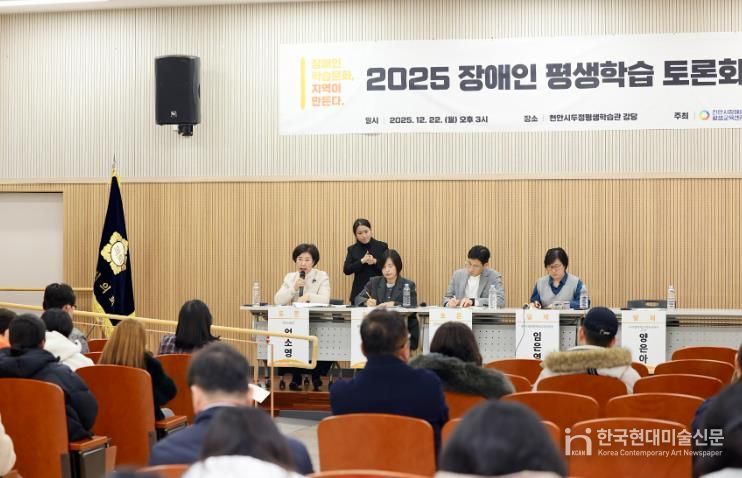 한국현대미술신문 신정은 기자 | 천안시의회 엄소영 의원(더불어민주당, 부성1동·성거읍)은 22일 두정동평생학습센터에서'장애인 학습문화, 지역이 만든다' 정책토론회를 개최하고, 천안시 장애인 평생교육의 현황과 구조적 한계를 점검하며 지역 기반 학습환경 개선 방안을 논의했다.