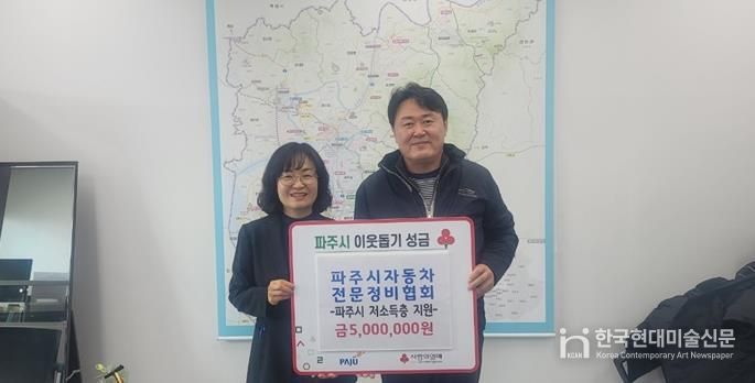 한국현대미술신문 배윤섭 기자 | 파주시는 지난 22일, 파주시자동차전문정비협회가 파주시청을 방문하여 관내 취약계층을 위해 써달라며 현금 5백만 원을 기탁했다고 밝혔다.