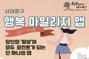 앞서 구는 올해 10월 21일 구민 건강 증진과 지역사회 참여 활성화를 위해 전국 지자체 최초의 포인트 통합관리 플랫폼인 ‘서대문구 행복 마일리지 앱’을 출시했다.