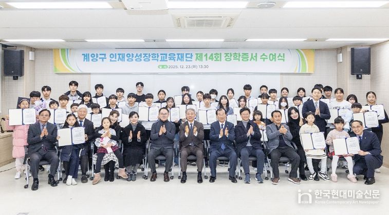 한국현대미술신문 박재남 기자 | (재)인천광역시 계양구 인재양성장학교육재단(이사장 이노경)은 12월 23일 지역 인재 발굴과 육성을 위해 제14회 장학생 132명을 선발해 장학증서를 수여했다고 밝혔다.