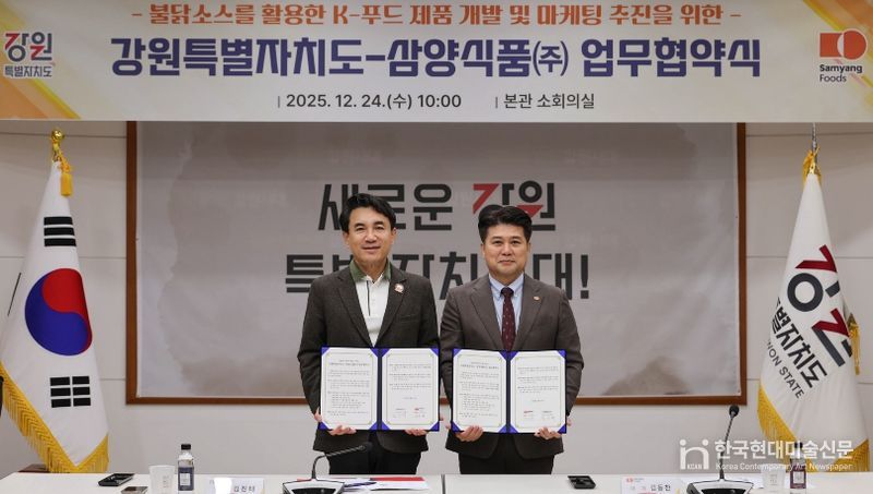 한국현대미술신문 원진 기자 | 강원특별자치도는 12월 24일 도청에서 삼양식품(주)과 강원도 특성을 반영한 K-푸드 육성을 위한 업무협약을 체결했다고 밝혔다.