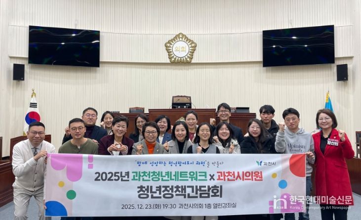 한국현대미술신문 배윤섭 기자 | 과천시는 지난 23일 과천시의회 열린강좌실에서 과천청년네트워크와 과천시의회 의원이 참석한 가운데 ‘함께 성장하는 청년참여도시 과천을 만들다, 2025년 과천시 청년정책 발전을 위한 청년정책간담회’를 개최했다고 밝혔다.