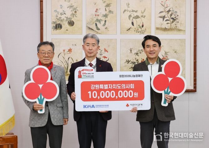 한국현대미술신문 원진 기자 | 강원특별자치도는 12월 24일 강원특별자치도의사회가 도청 통상상담실에서 연말 소외계층 이웃돕기 성금 1,000만 원을 전달했다고 밝혔다.