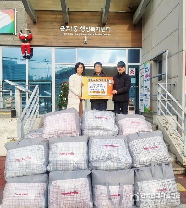 한국현대미술신문 배윤섭 기자 | 파주시 금촌1동은 지난 24일 금촌5일장 금정로 상인연합회로부터 375만 원 상당의 이불 30채를 기탁 받았다고 밝혔다.
