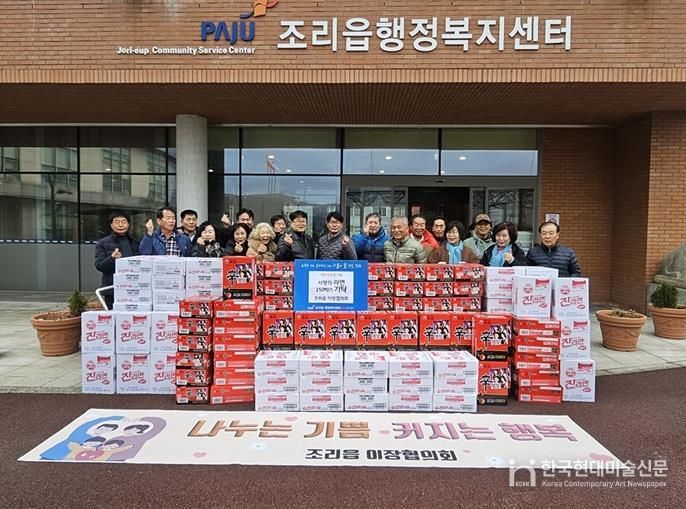한국현대미술신문 배윤섭 기자 | 파주시 조리읍 이장협의회는 연말을 맞아 지역사회 나눔 문화 확산과 복지 사각지대 해소를 위해 지난 23일 조리읍에 라면 150상자를 기탁했다.